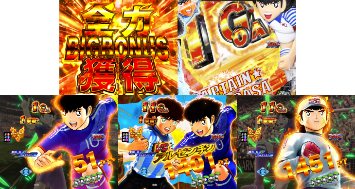 Pキャプテン翼2020(キャプ翼2020)|全力BIG BONUS概要 小当りRUSH 確変割合 平均払い出し個数 演出