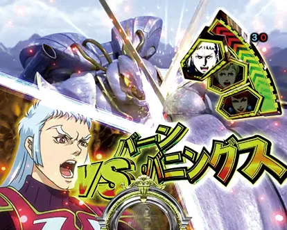中図柄に“シナリオ”アイコン停止で発展する、全13種のミッション形式のリーチ。演出成功で「バトルモード」のほか、「ダンバインリーチ」や「ビルバインリーチ」に発展濃厚となる。