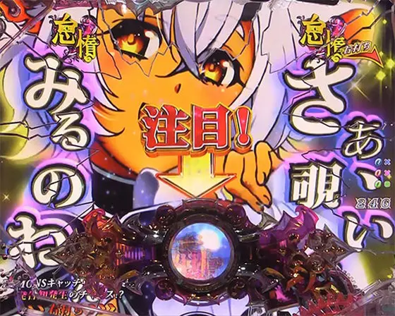 液晶左上役物の作動から発展するリーチ。ルシファー勝利で大当り!?