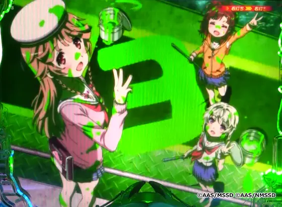 さらに、パトランプ点灯後もボタンを押す(何回でも押下可能)と“キュイン”の文字が発生し、文字色が金なら「ブルーマーメイドボーナス」以上濃厚、虹なら「超ブルーマーメイドボーナス」濃厚となる裏ボタンが存在する。