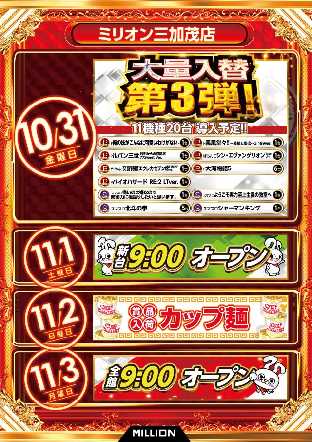 - [100円/89玉]パチ:176台 [0.4]パチ:44台 [1000円/178枚]スロ:44台 [1000円/46枚]スロ:44台