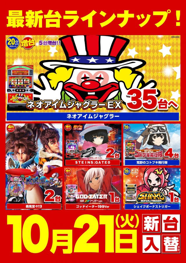 - [1.02]パチ:284台 [4]パチ:571台 [1000円/46枚]スロ:645台