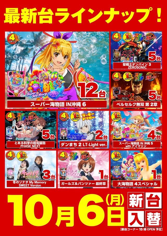 - パチンコ: [4] [1000円/925玉] パチスロ: [1000円/46枚]