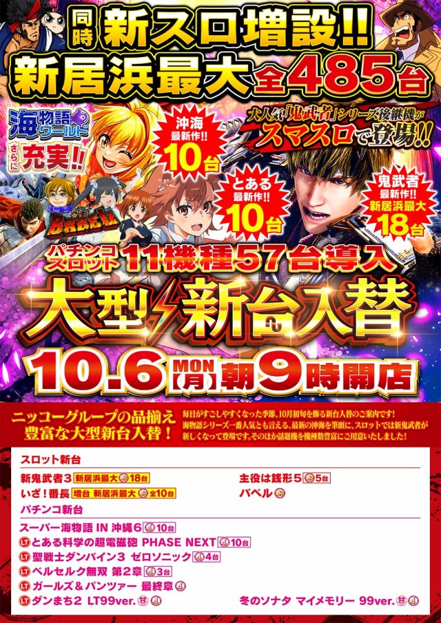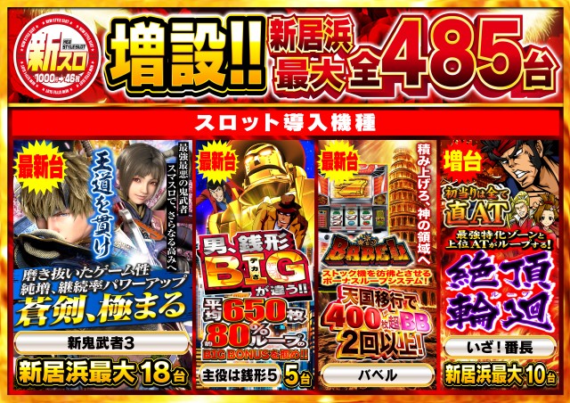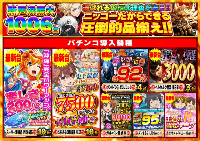 - 設備一新 パチンコ480台×スロット526台の 快適遊技空間!! 美しが丘Nikko1000で 新居浜を遊ぼう!