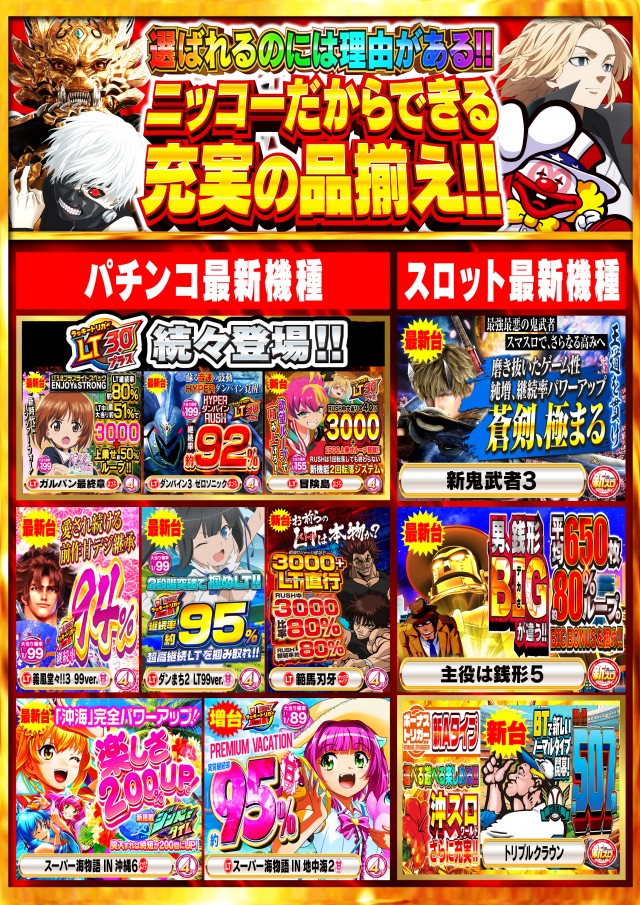 - 4パチ:144台 1パチ:108台 新スロ:72台