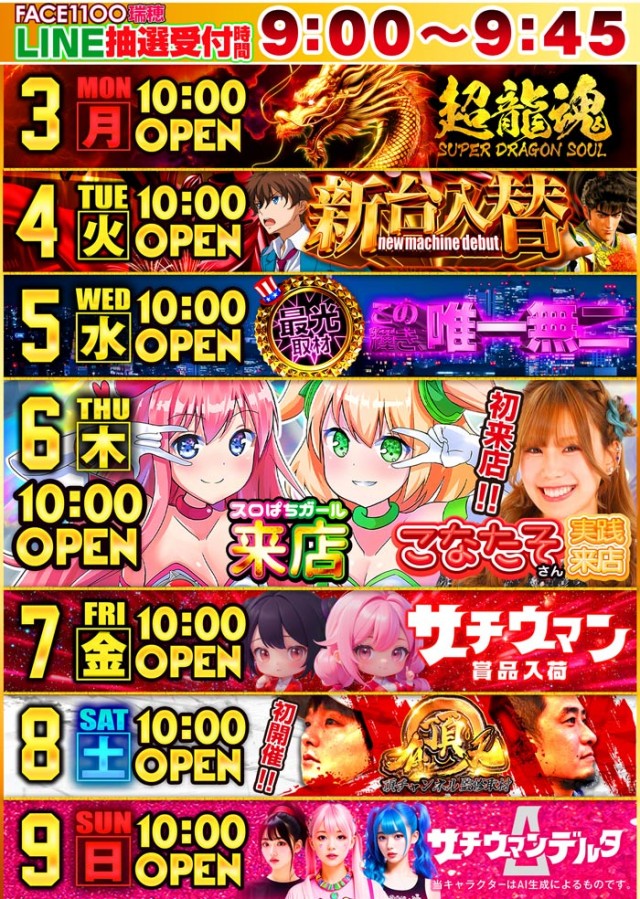 - [4]パチ:396台 [1]パチ:220台 [1000円/46枚]スロ:421台