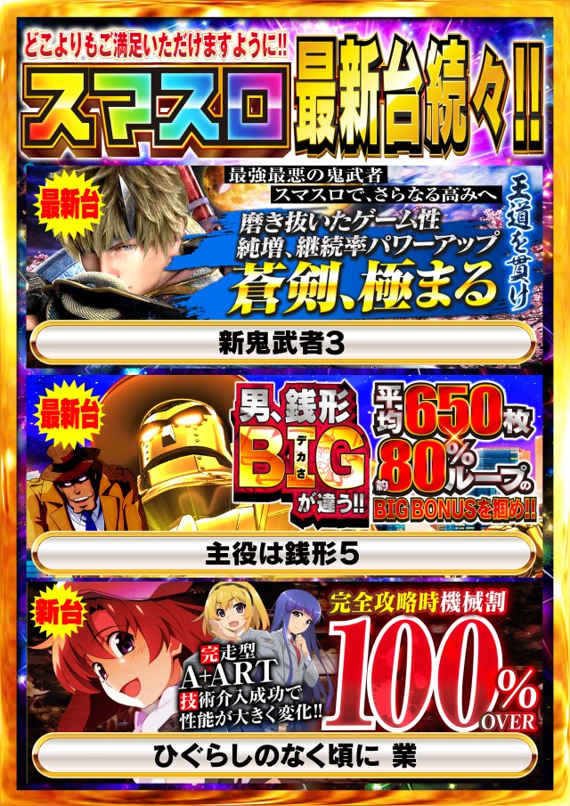 - 4パチ:144台 1パチ:108 新スロ:108台