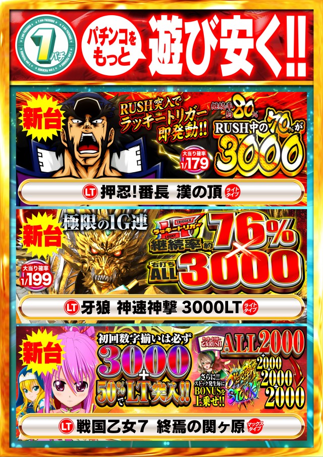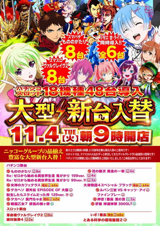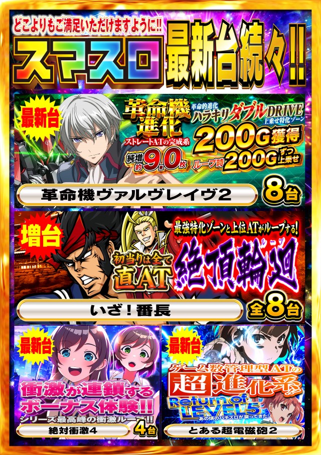 - [4]パチ:320台 [1]パチ:160台 [1000円/46枚]スロ:302台