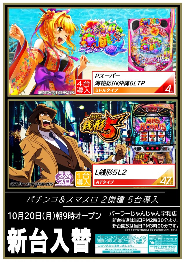 - パチンコ: [4円/200台][1.02円/120台] スロット: [21.27円/80台][5.1円/40台]