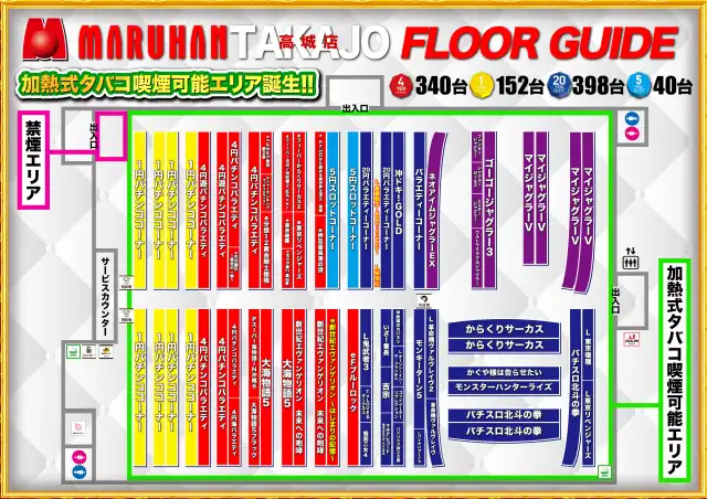 - [パチ] 4円:340台 1円:152台 計492台 [スロ] 20円:398台 5円:40台 他 計439台
