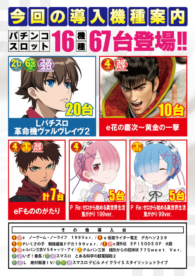 - 4パチ:318台 1パチ:160台 20スロ:327台 6.25スロ:38台