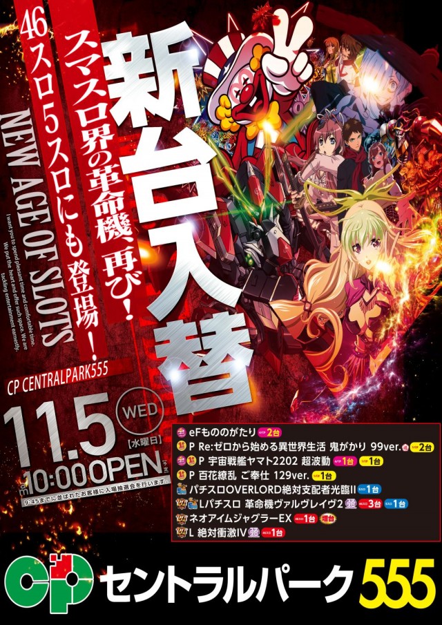 - [1.111]パチ:119台 [0.4]パチ:41台 [4]パチ:41台 [1000円/180枚]スロ:176台 [1000円/46枚]スロ:152台 [2.5]スロ:14台