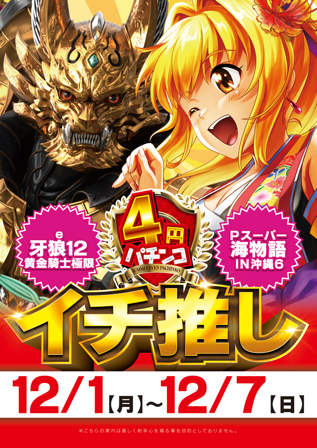 - [1000円/250玉]パチ:240台 [1]パチ:280台 [1000円/46枚]スロ:240台 [1,000円/160枚]スロ:40台