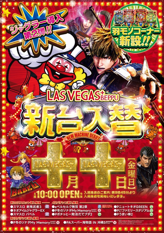 - [1.111]パチ:240台 [1000円/250玉]パチ:160台 [1000円/46枚]スロ:120台 [1000円/180枚]スロ:40台
