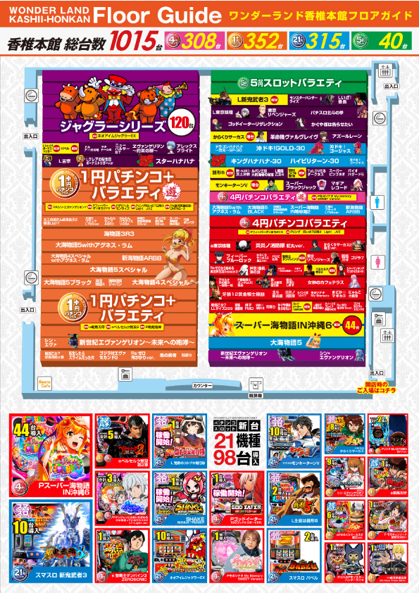- [4]パチ:307台 [1.11]パチ:352台 [5.43]スロ:40台 [21.74]スロ:315台