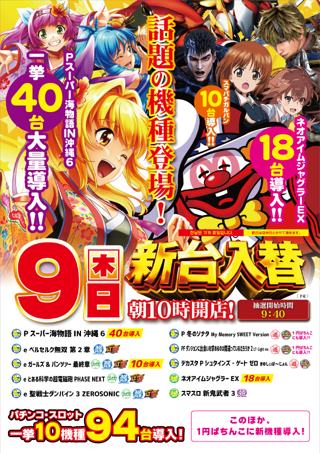 - パチンコ・スロット全台各台計数機&飛沫予防ボード設置