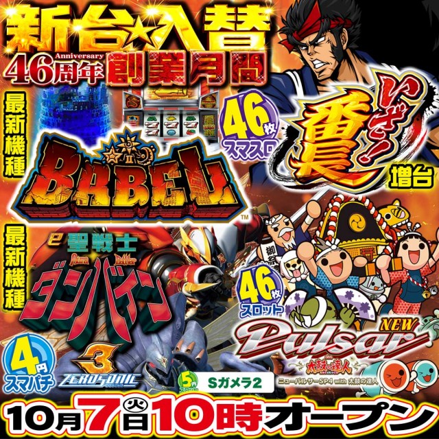 - [1.25]パチ:84台 [4]パチ:28台 [1000円/184枚]スロ:24台 [1000円/46枚]スロ:94台