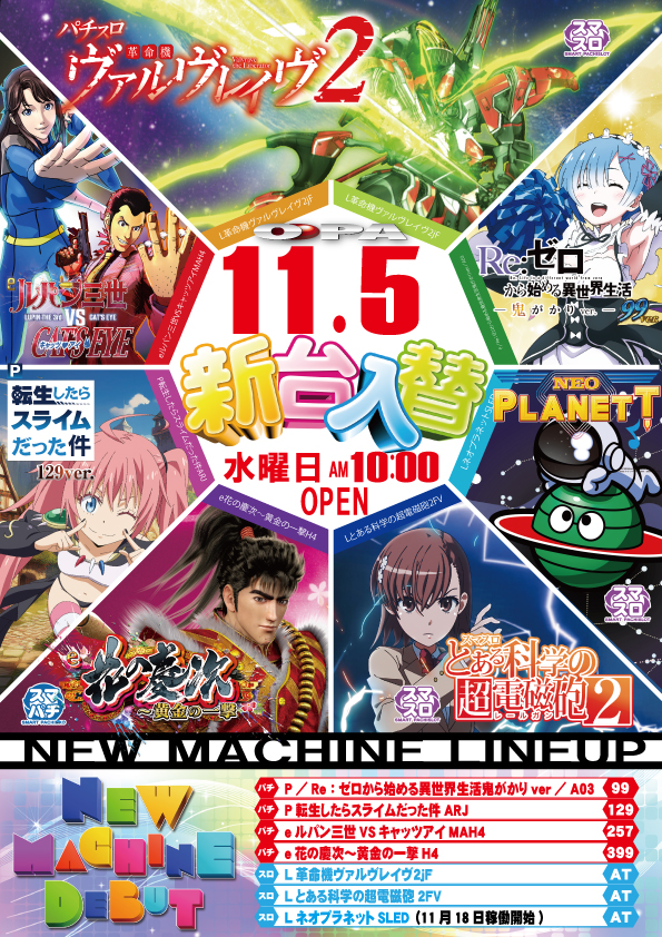 - [1.111]パチ:239台 [1000円/90枚]スロ:199台