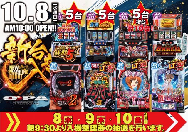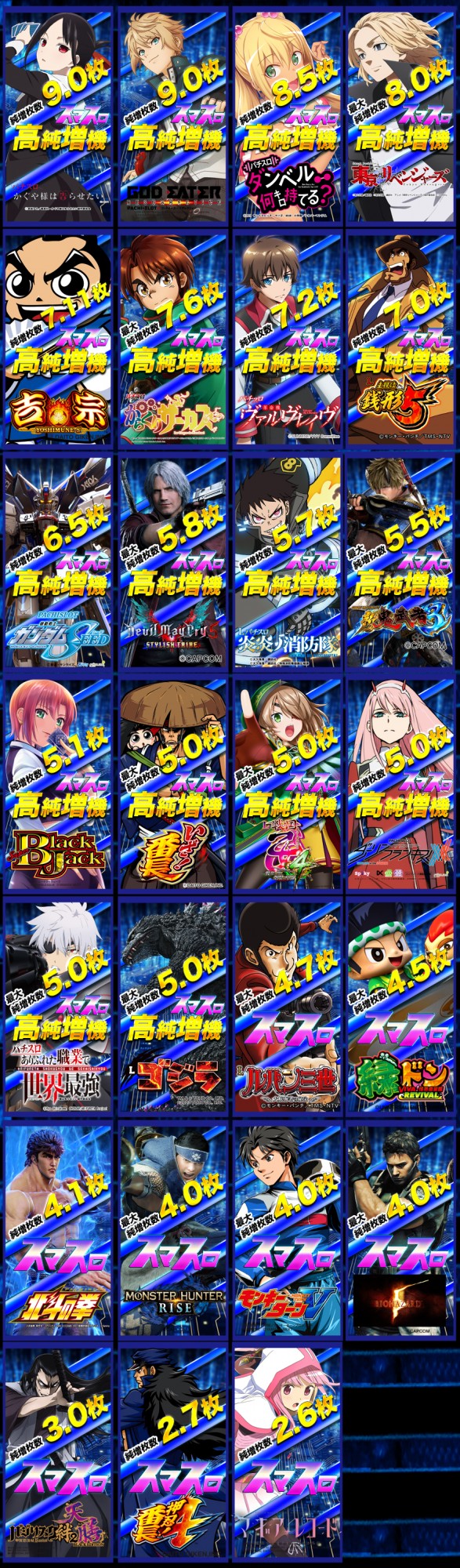 - [4]パチ:296台 [1]パチ:80台 [1000円/46枚]スロ:435台