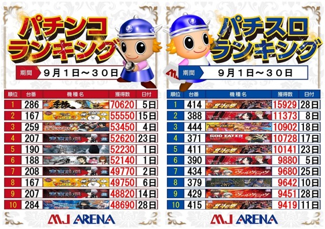- パチンコ:[1000円/250玉] 222台 [1000円/900玉]64台 パチスロ:[1000円/46枚]170台