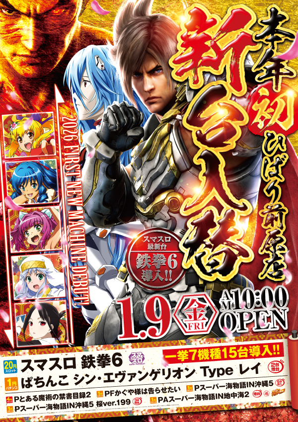 - 9時50分整理券配布 ※新台入替&7日17日27日は抽選入場 9時50分抽選開始♪