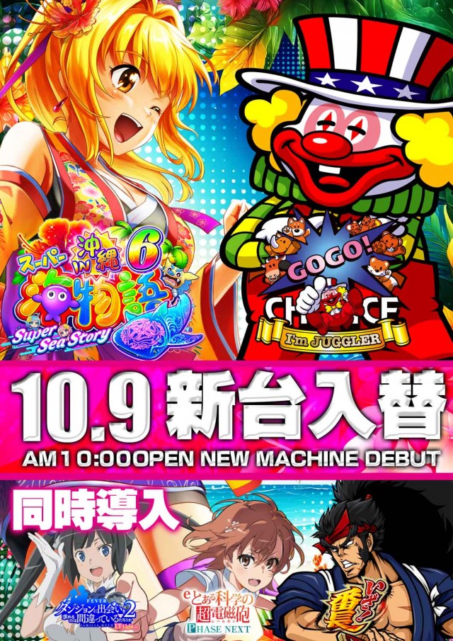 - 新台入替初日等、一部抽選入場の場合がございます。抽選開始時間は9:40です。