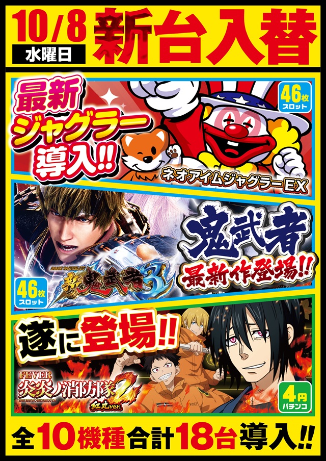 - [4]パチ:56台 [1]パチ:112台 [1000円/46枚]スロ:143台