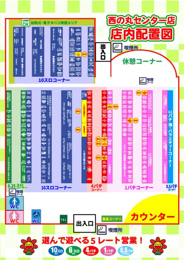 - [500円/120玉]パチ:40台 [1.111]パチ:120台 [0.556]パチ:20台 [None]パチ:-台 [1000円/90枚]スロ:209台 [6.25]スロ:40台