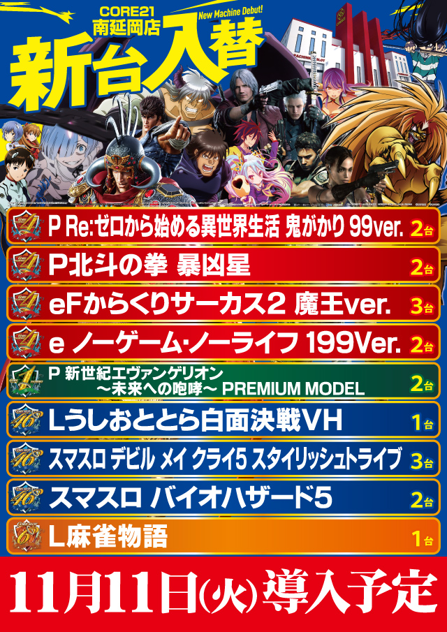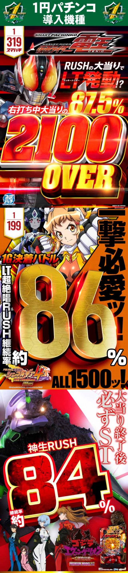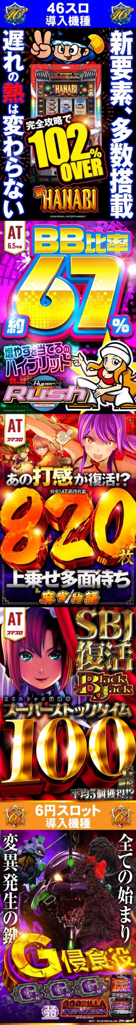 - [1]パチ:216台 [4]パチ:72台 [1000円/46枚]スロ:144台 [1000円/150枚]スロ:72台