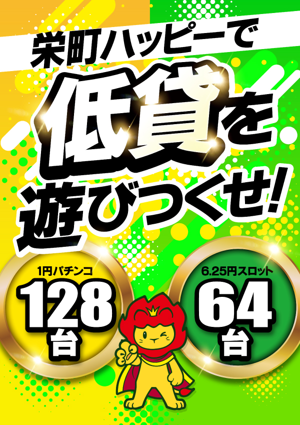 - パチンコ: [4] [1] パチスロ: [1000円/46枚] [6.25] パチンコ 320台 / スロット 250台