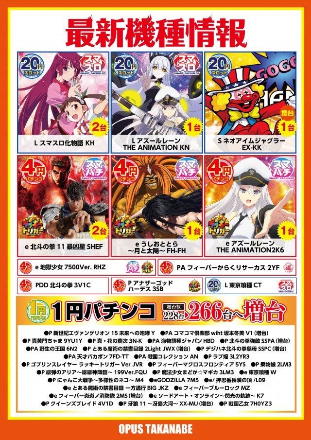 - [4]パチ:228台 [1]パチ:228台 [20]スロ:150台