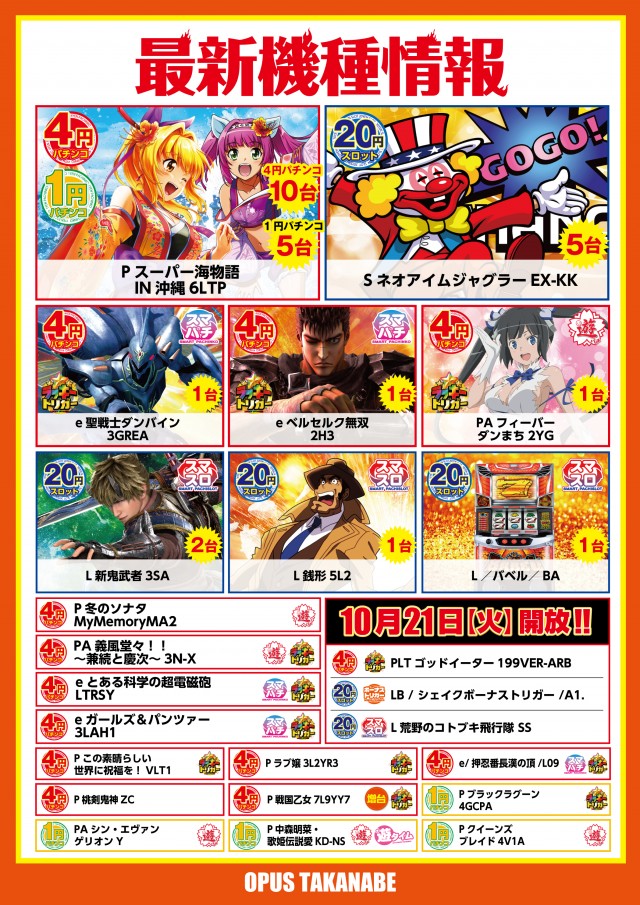 - 10:00より各出入口より入場頂けます。※新台入替初日のみ、キッチン横の出入り口を優先しての入場となります。