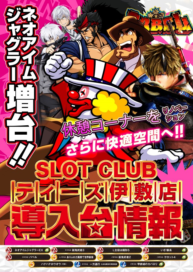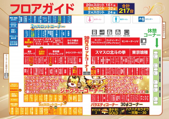 - [1000円/46枚]スロ:161台 [1000円/180枚]スロ:32台 [1000円/470枚]スロ:24台