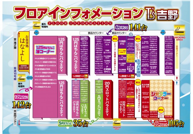 - [1.25]パチ:142台 [4]パチ:141台 [21.277]スロ:105台 [5]スロ:35台
