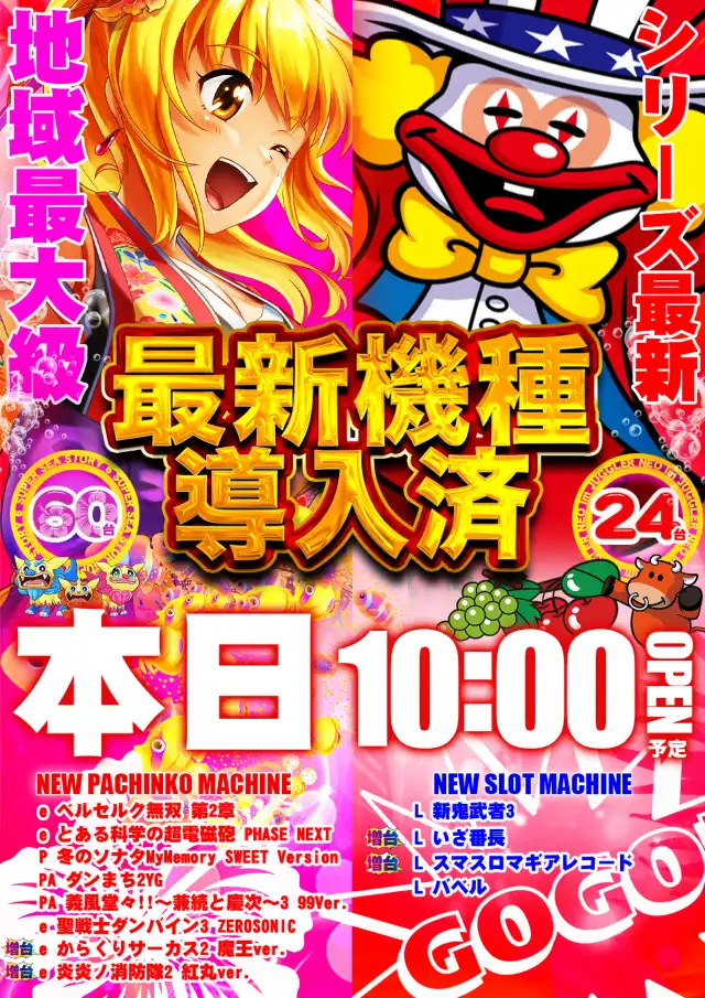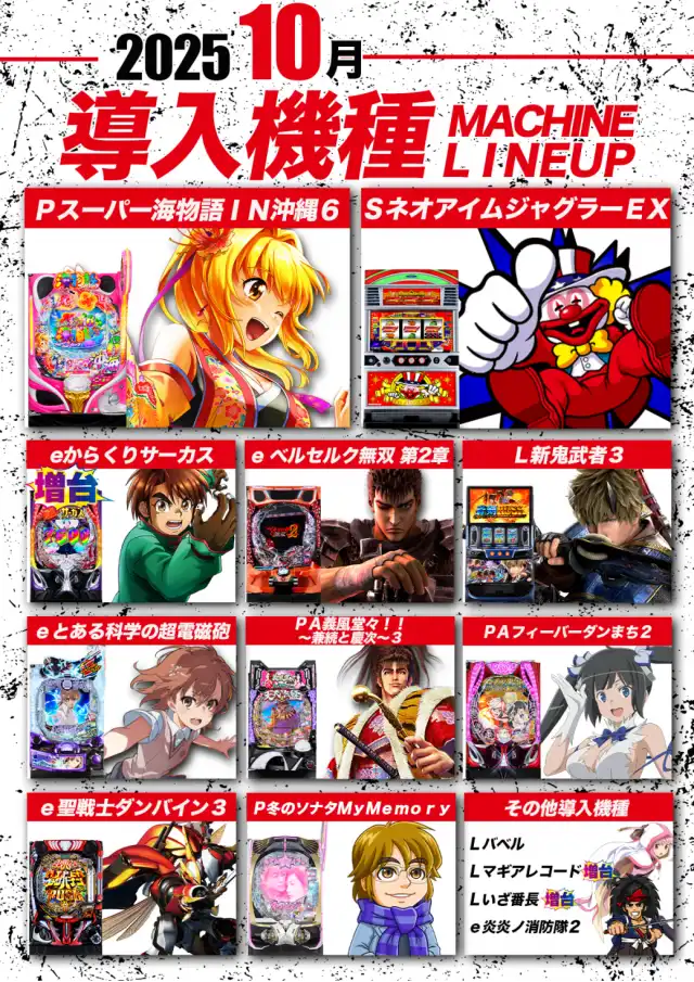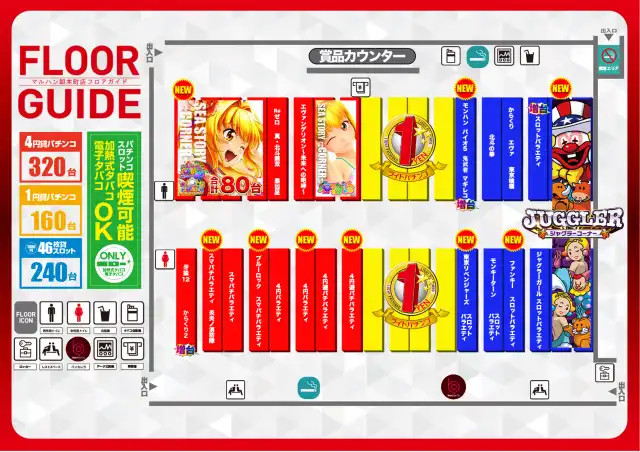 - [4]パチ:320台 [1]パチ:160台 [1000円/46枚]スロ:240台