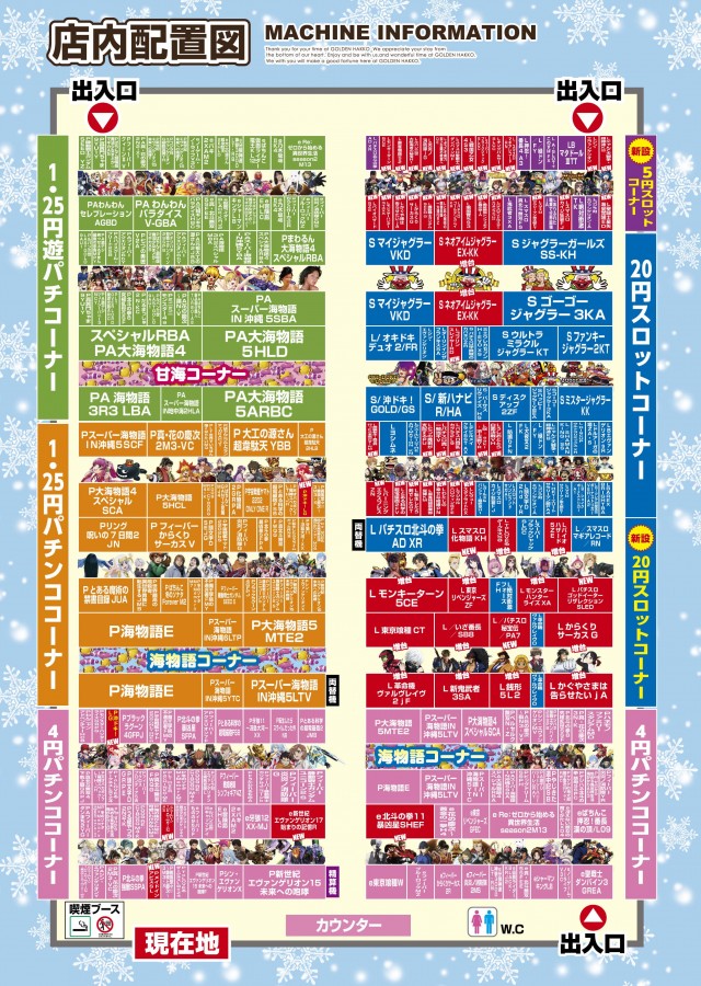 - [None]パチ:144台 [None]パチ:214台 [None]スロ:180台 [None]スロ:36台