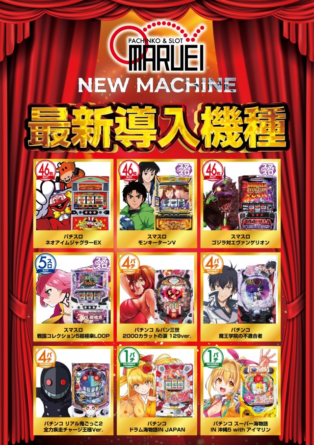 - [100円/90玉]パチ:150台 [4.386]パチ:120台 [1000円/46枚]スロ:90台 [1000円/180枚]スロ:30台