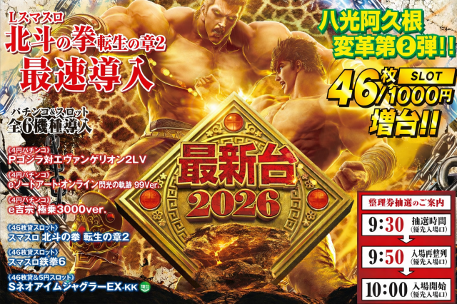 - [1.25]パチ:216台 [4]パチ:216台 [1000円/46枚]スロ:115台 [5]スロ:44台