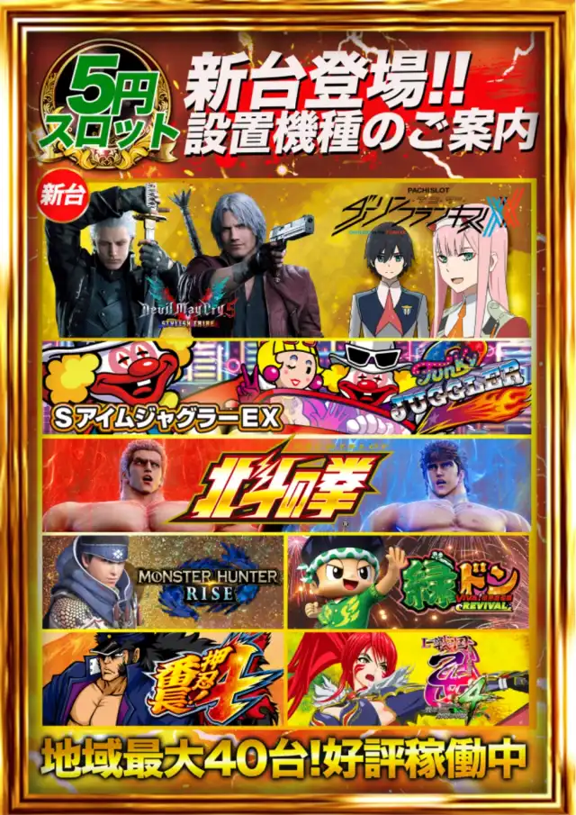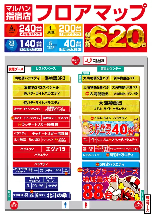 - ■マルハン指宿店では、地域に密着した営業にと日々努力し続けます。 お客様同士が自然に集い・楽しむ空間として、地域社会との「共感・信頼」を目指します。 私共が大切にしているものとして、『お客様の安心』があります。 お客様に安心してご遊技いただけるよう、『不正』『不快』『不備』を徹底的に排除いたします。 マルハン指宿店にて『刺激』『やすらぎ』が生みだす『エンターテイメント』を存分にお楽しみください。