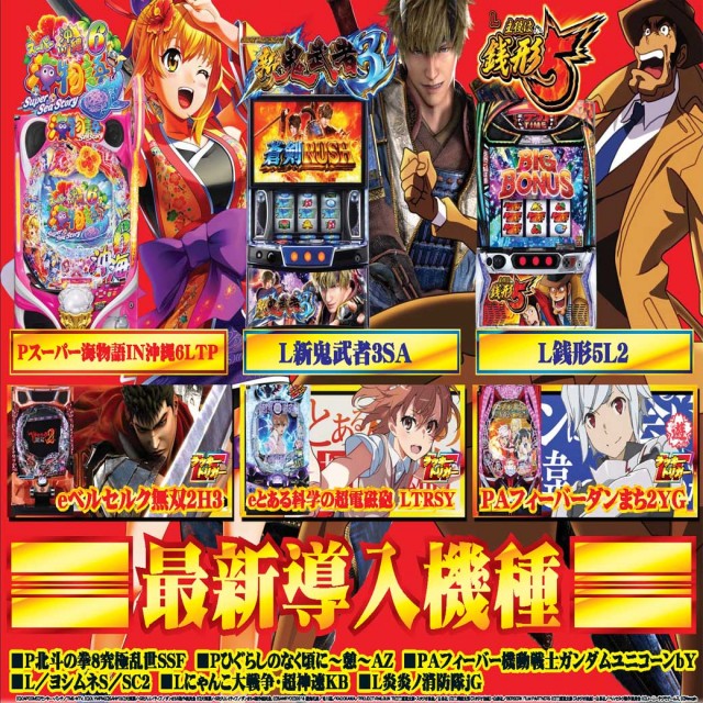 - パチンコ[貸玉1000円/250個] [貸玉1000円/830個] スロット[貸コイン1000円/46枚]