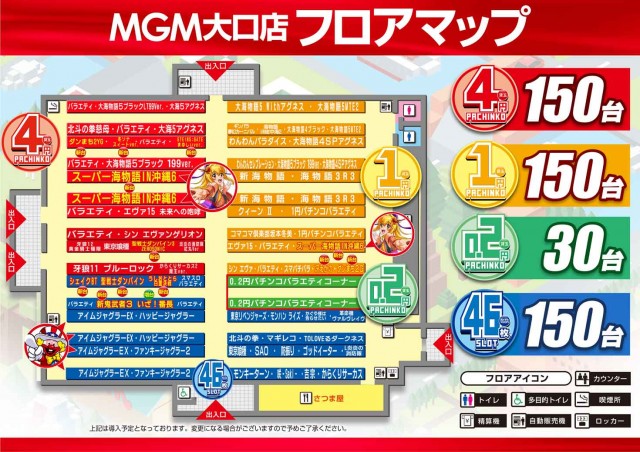 - パチンコ: [4] [1] [0.2] パチスロ: [1000円/46枚]
