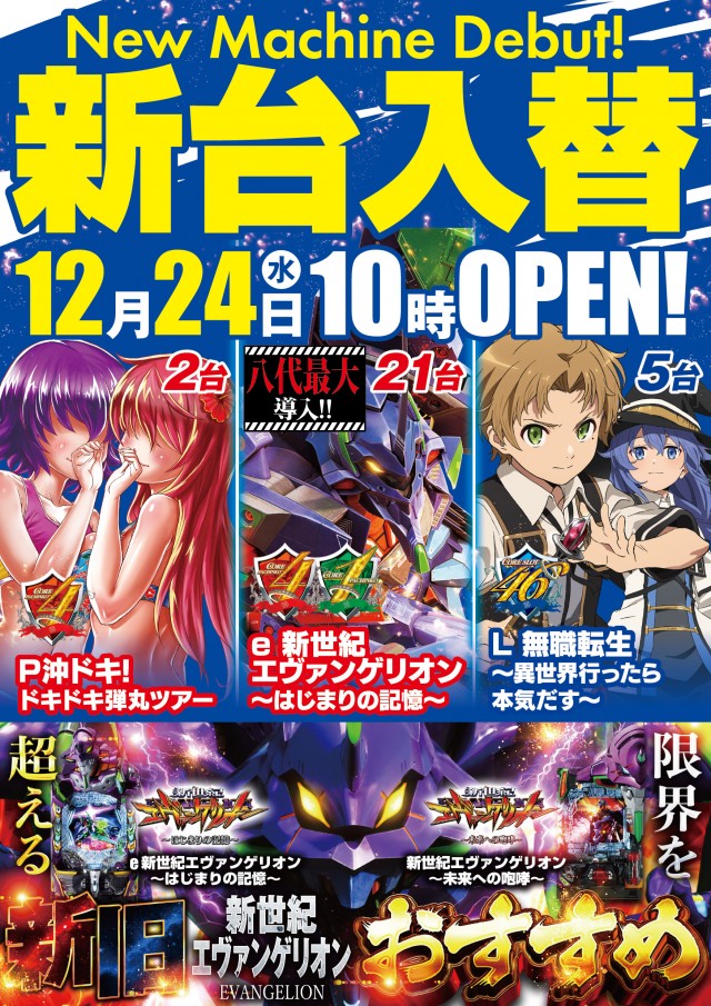 - ★八代最大6レート営業展開中★ 4円/2円/1円/0.5円パチンコ 1000円46枚/1000円180枚スロット ★八代最大1040台設置★ ★店内分煙 喫煙コーナー設置★ 広々とした店内でごゆっくりとお楽しみ下さい♪(^^♪