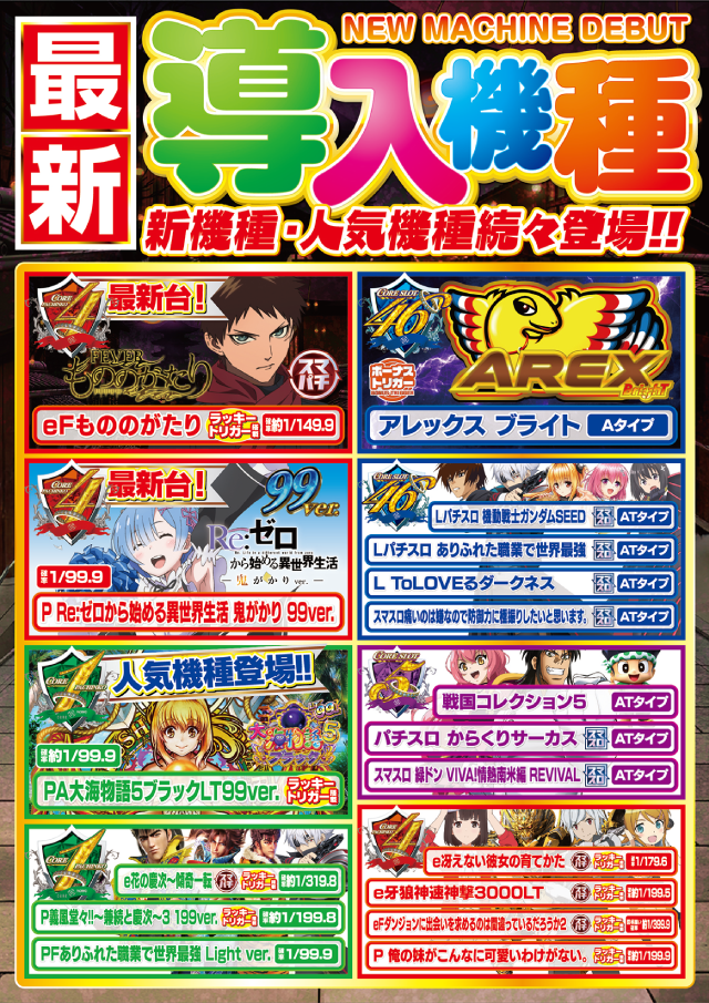 - 新台入替の前日はお休みします