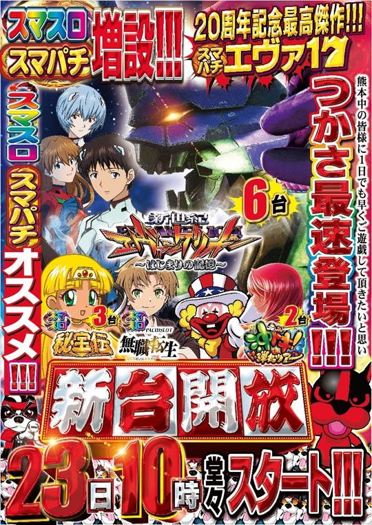 - [4]パチ:180台 [1.111]パチ:96台 [0.25]パチ:32台 [20]スロ:190台 [2]スロ:34台