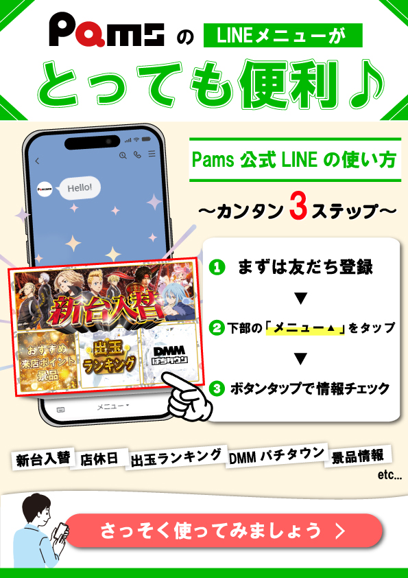 - ・パムズオリジナルホームページ更新中 ・パチンコ全台→カード一枚でカンタン・楽々【各台計数システム】