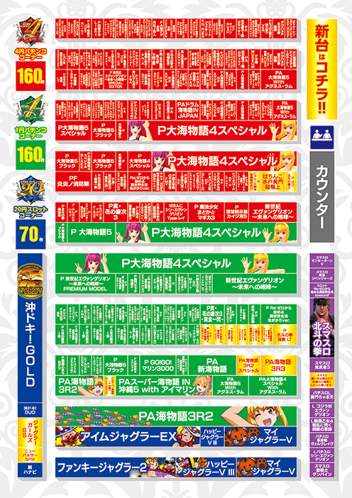 - [1]パチ:159台 [4]パチ:164台 [20]スロ:70台
