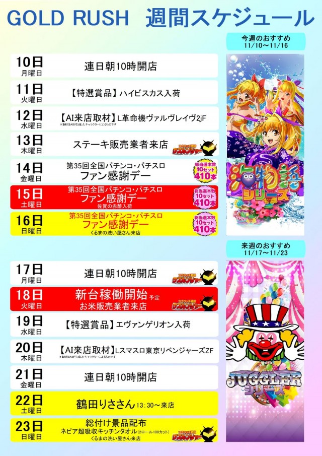 ゴールドラッシュ高木瀬店の設置機種