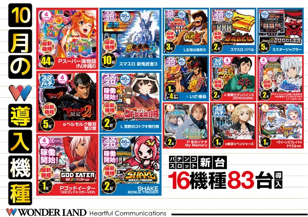 - 最後までご覧いただき有難うございます。 ワンダーランド武雄店は、お客様に楽しんで頂けるホールづくりを目指し、日々明るく元気よく接客向上に努めていきます。 ワンダーランド武雄店 アテンダント一同