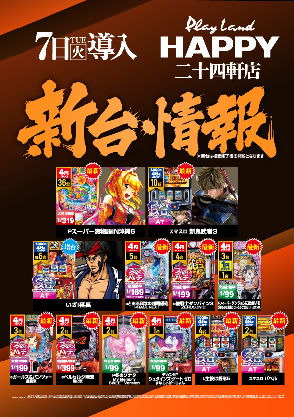 - パチンコ: [4] [1] パチスロ: [1000円/46枚] パチンコ 360台 / スロット 316台