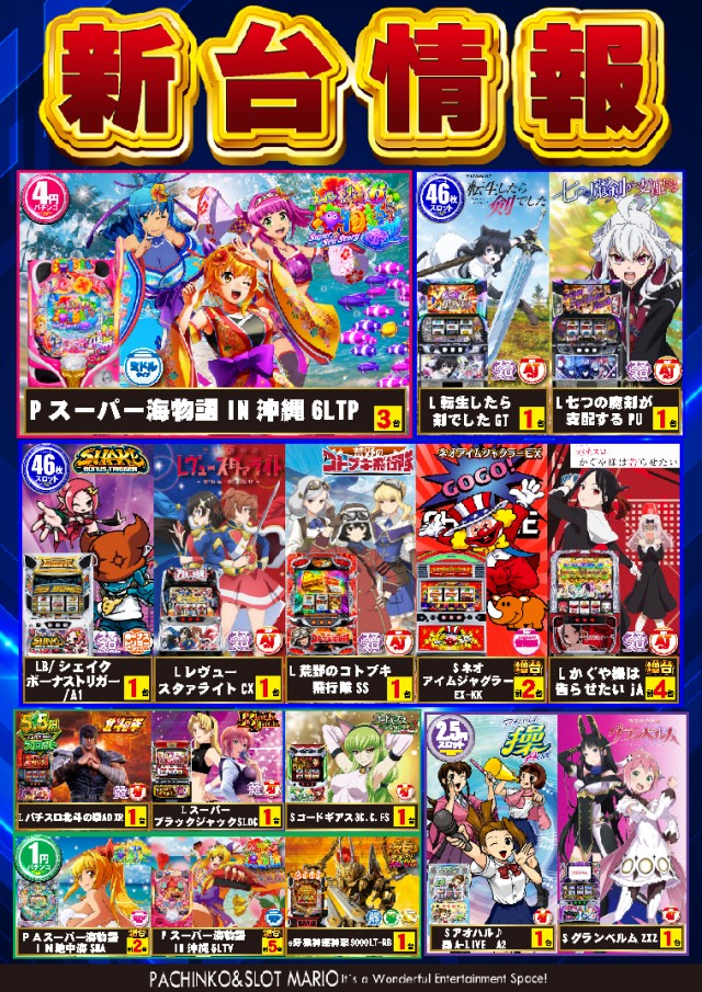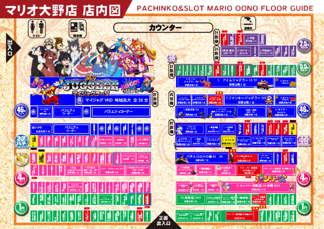 - [4]パチ:91台 [1]パチ:64台 [1000円/46枚]スロ:160台 [5.5]スロ:16台 [2.5]スロ:16台